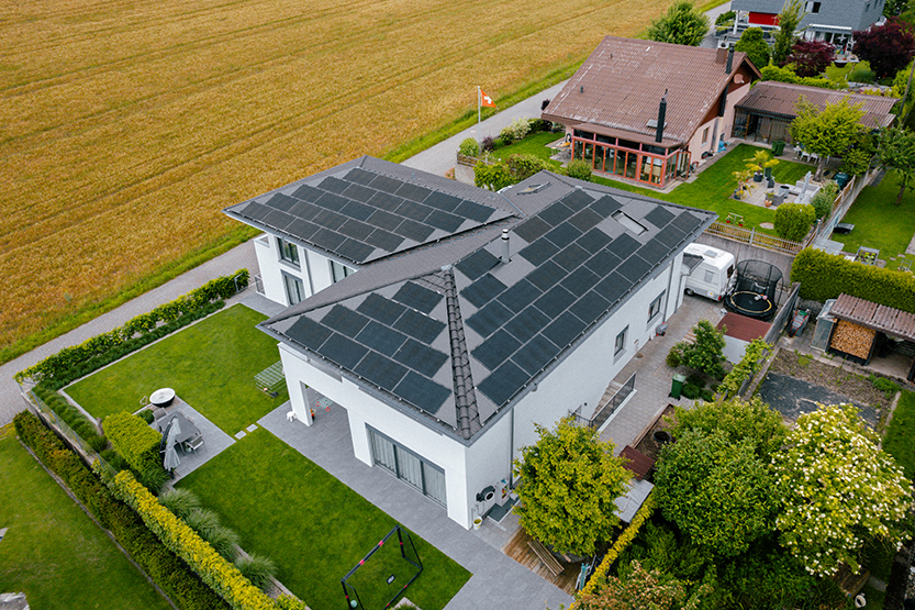 Tags: Aufdach, Aufdach-Solaranlage, Bern, Einfamilienhaus, Photovoltaik, Rütschelen