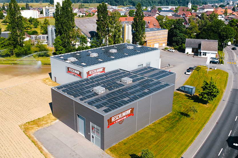 Tags: Bern, Flachdach, Flachdach-Solaranlage, Industriegebäude, Lotzwil, Photovoltaik