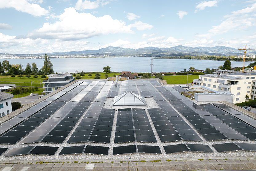 Tags: Altendorf, Flachdach, Flachdach-Solaranlage, Industriegebäude, Photovoltaik, Schwyz, Solaranlage
