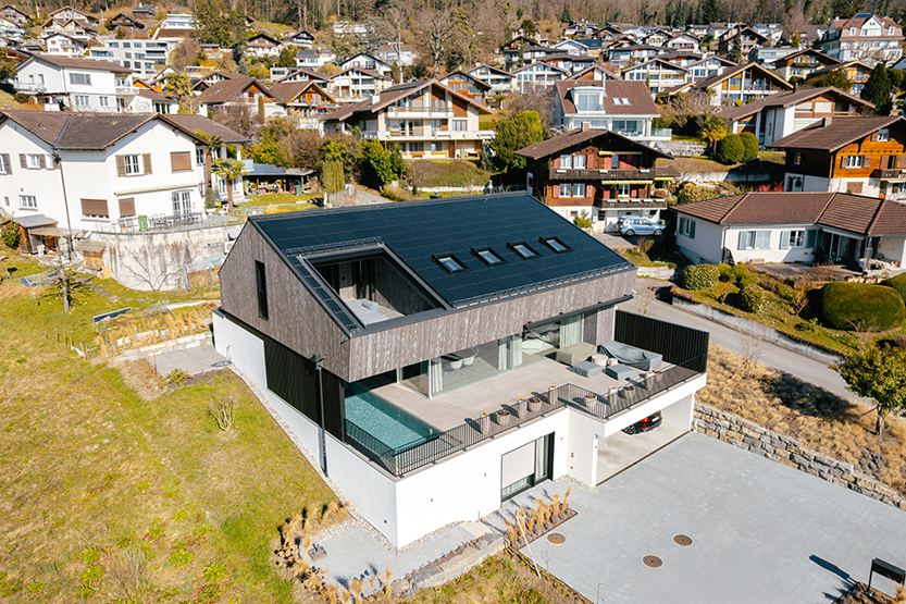 Tags: Bern, Einfamilienhaus, Hünibach, Indach, Indach-Solaranlage, Photovoltaik